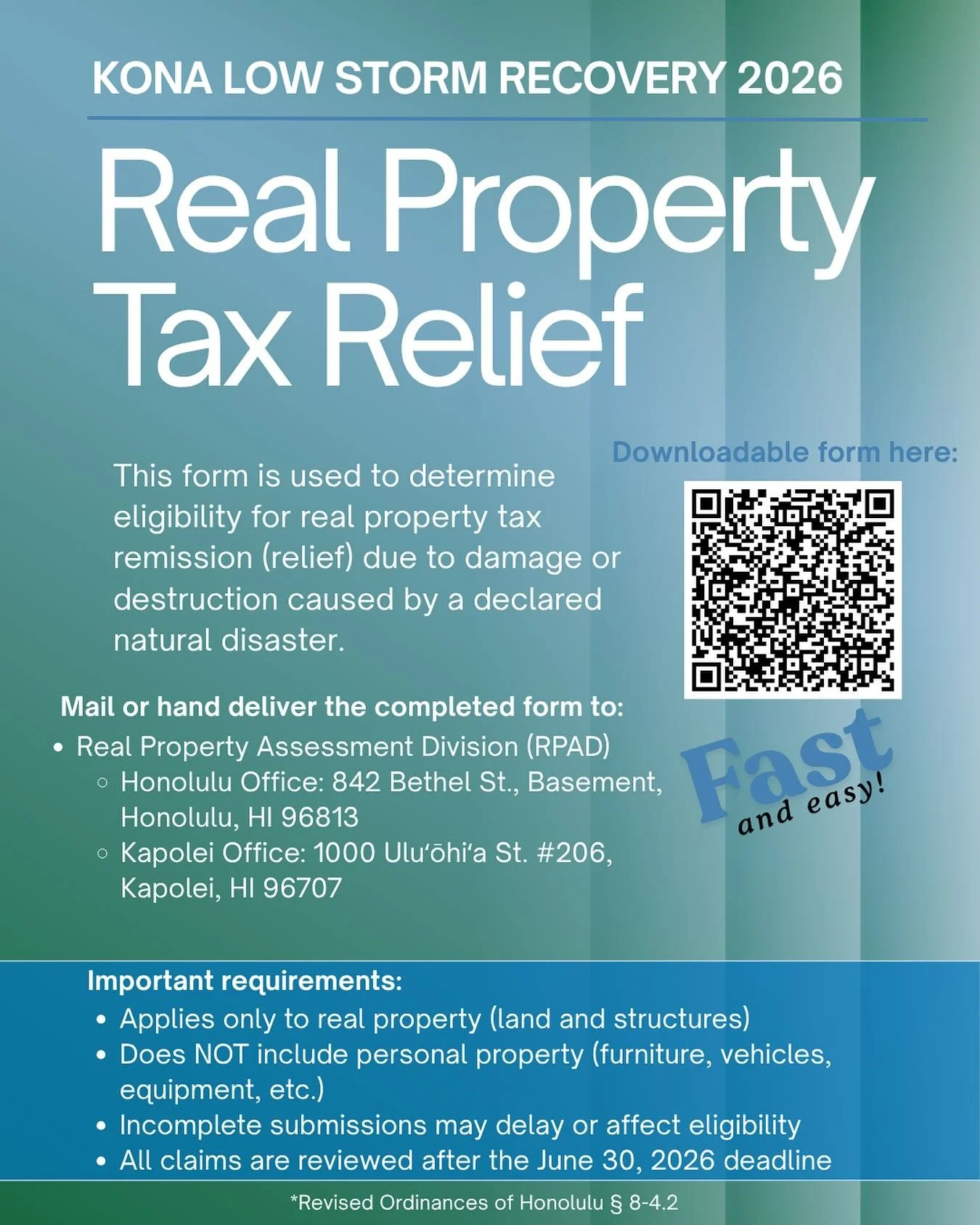 For residents impacted by the March and April 2026 Kona Low storms.